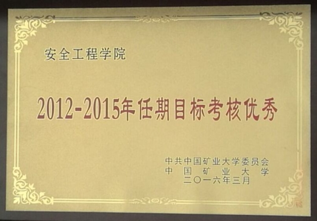 领导班子获得2012-2015年任期目标考核优秀;矿井瓦斯防治与利用研究所被评为2014-2016年度校级优秀教学科研群体。