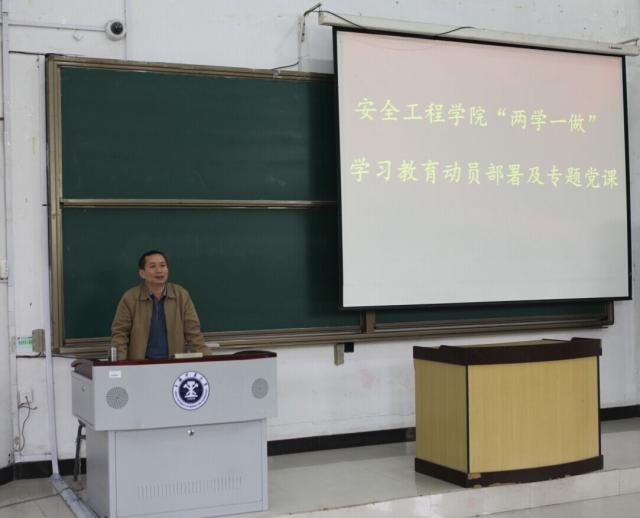 “两学一做”学习教育进行了部署。一要准确把握目标要求。开展“两学一做”学习教育的主要任务是教育引导广大党员干部师生尊崇党章、遵守党规,用习近平总书记系列重要讲话精神统一思想行动,做“四讲四有”合格党员。主要目标是“四个进一步”——进一步坚定理想信念,提高党性觉悟;进一步增强政治意识、大局意识、核心意识、看齐意识,坚定正确政治方向;进一步树立清风正气、严守政治纪律政治规矩;进一步强化宗旨观念,勇于担当作为。基本要求是“五个坚持”——坚持正面教育为主,用科学理论武装头脑;坚持学用结合,知行合一;坚持问题导向,“学”要带着问题学,“做”要针对问题改,在“五个着力解决”上下功夫(即着力解决一些党员存在的理想信念模糊动摇、党的意识淡化、宗旨观念淡薄、精神不振和道德行为不端等问题);坚持领导带头,以上率下;坚持从实际出发,分类指导,确保实效。二要从严从实抓好规定动作。学院按照上级有关要求,结合学院实际,制定学院学习教育实施方案,面向全院各党支部和全体党员进行动员部署,并且要严格按照学院学习教育实施方案中的时间节点完成各项任务要求。三要高度重视,加强领导,落实责任,强化督导。院党委将在校党委的领导和学校督导组的指导下开展工作,加强对学院党支部进行全覆盖、全过程的指导,为每个支部和每个党员配发专门记录本,从严从实抓好学习教育,并成立五个督导组,对各支部组织“两学一做”学习教育开展情况和支部书记抓“两学一做”学习教育情况进行监督检查,推动学习教育取得实效。四要强化舆论引导,营造良好氛围。学院将充分利用网站、微博、微信等媒体平台,及时推送学习教育内容,对于“两学一做”学习教育中涌现出的好做法及时进行总结,对于先进典型和事迹及时做好宣传,营造开展学习教育的良好氛围。