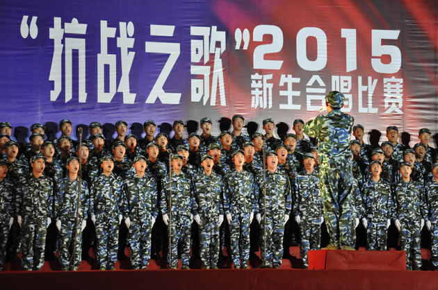 校2015年“抗战之歌”新生合唱比赛在南湖校区东坡运动场隆重举行。校领导、学校相关部门和各学院负责人,全体新生辅导员和2015级新生们参加了本次活动。包子漫画