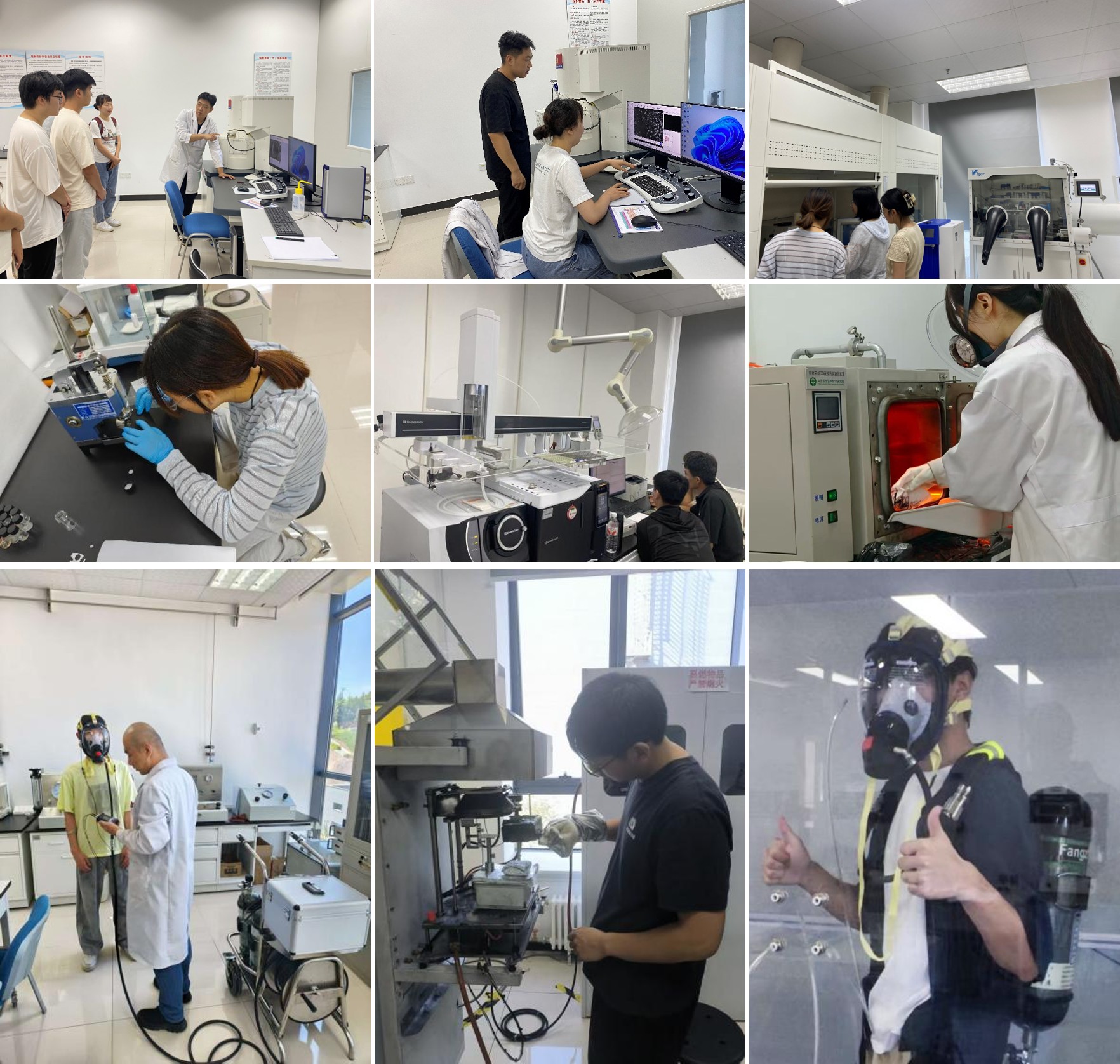 在实操实训环节,校企双方指导教师创新实习组织形式,将39名学生分为9个小组,每组3~4人,分别进入中国安科院下属各研究所(涵盖城市安全、危化品安全、职业健康等领域)及安全生产检测服务中心,实际参与项目研究及实验操作。实训内容涵盖有限空间CO高效消纳、纽扣电池制备、职业危害有机物检测、劳动防护用品检测、SBI单体燃烧与热重分析、梯度过滤金属滤料性能测试等多个实践项目。通过在各研究所岗位实习,同学们接触到高端仪器设备,锻炼了实际操作能力,进一步培养了科研思维与实践精神。