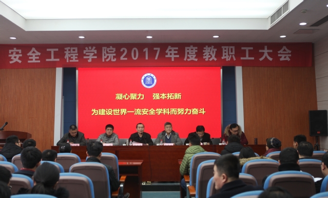 2017年度教职工大会”在矿业科学中心A200举行。校教代会执委会副主任、校工会主席李来成,学院党政领导及全体教职工出席大会,部分学生代表列席会议。大会由院党委书记章毛平主持。