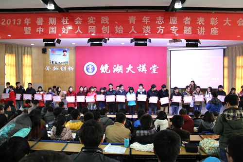 1月6日下午,2013年暑期社会实践、青年志愿者表彰大会在镜湖大讲堂隆重举行。党委副书记曹德欣等校领导出席表彰大会并在主席台就座。经各学院推荐,校大学生社会实践工作领导小组审核批准,包子漫画