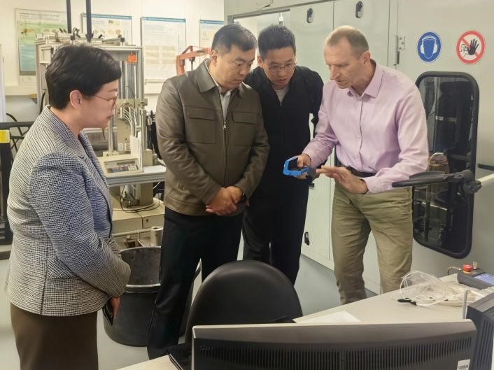 学科布局以及学院在安全科学与工程、应急管理等方面的显著优势。座谈会上,双方就联合申报与承担重大科研项目、建立常态化的青年教师互访机制以及推进研究生联合培养等核心议题进行深入交谈,并达成了多项共识。代表团还实地调研了岩土工程研究所实验室,双方就实验室管理、设备共享制度等进行了富有成效的探讨。