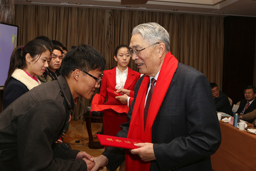 袁亮院士为获得奖学金的同学颁奖
