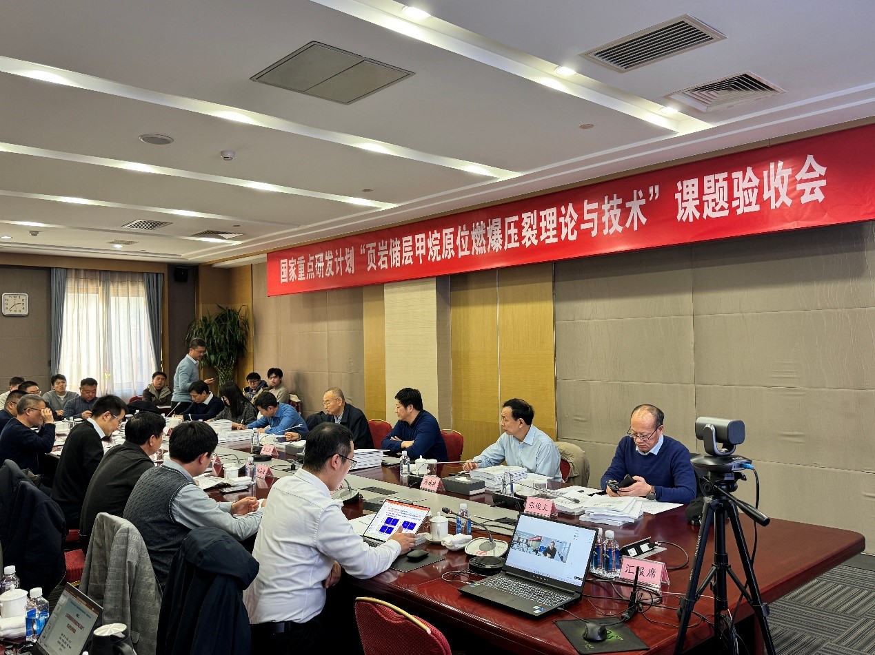 专家组听取了项目及各课题汇报,审阅了相关技术资料和支撑材料。经质询与讨论,专家组一致认为:各课题紧密围绕页岩储层甲烷原位燃爆压裂这一变革性技术,系统开展了理论分析、实验验证、关键技术研发与现场先导性试验,构建了较为完整的甲烷燃爆压裂理论与技术体系,在甲烷燃爆载荷调控机理、井筒完整性评价与控制技术、裂缝扩展规律及导控方法、导流能力及产能评价等方面取得了多项创新性成果,全面完成了各项研究内容和考核指标。各课题组织管理规范,经费使用合理。专家组一致同意通过课题绩效评价。