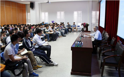 关于如何成为将才,帅才?周世宁院士认为,学习好是创新的基础。学习好不是指成为考试、做题的机器,而是在透彻掌握基本理论知识的同时,学以致用。谈到学习的技巧,他从反省自身出发,告诫大学生既要懂得数理化,也要懂得为人世故,处理好方方面面的关系。他通过介绍自己的学习方法R-T-R,即From Respect to Suspect, From Suspect to Respect,强调了在反复学习和质疑中将要点学深、学透的重要性。他通过对曹冲称象和阿基米德测皇冠的对比,提醒同学们要有抽象能力,要学会原始创新和移植创新。