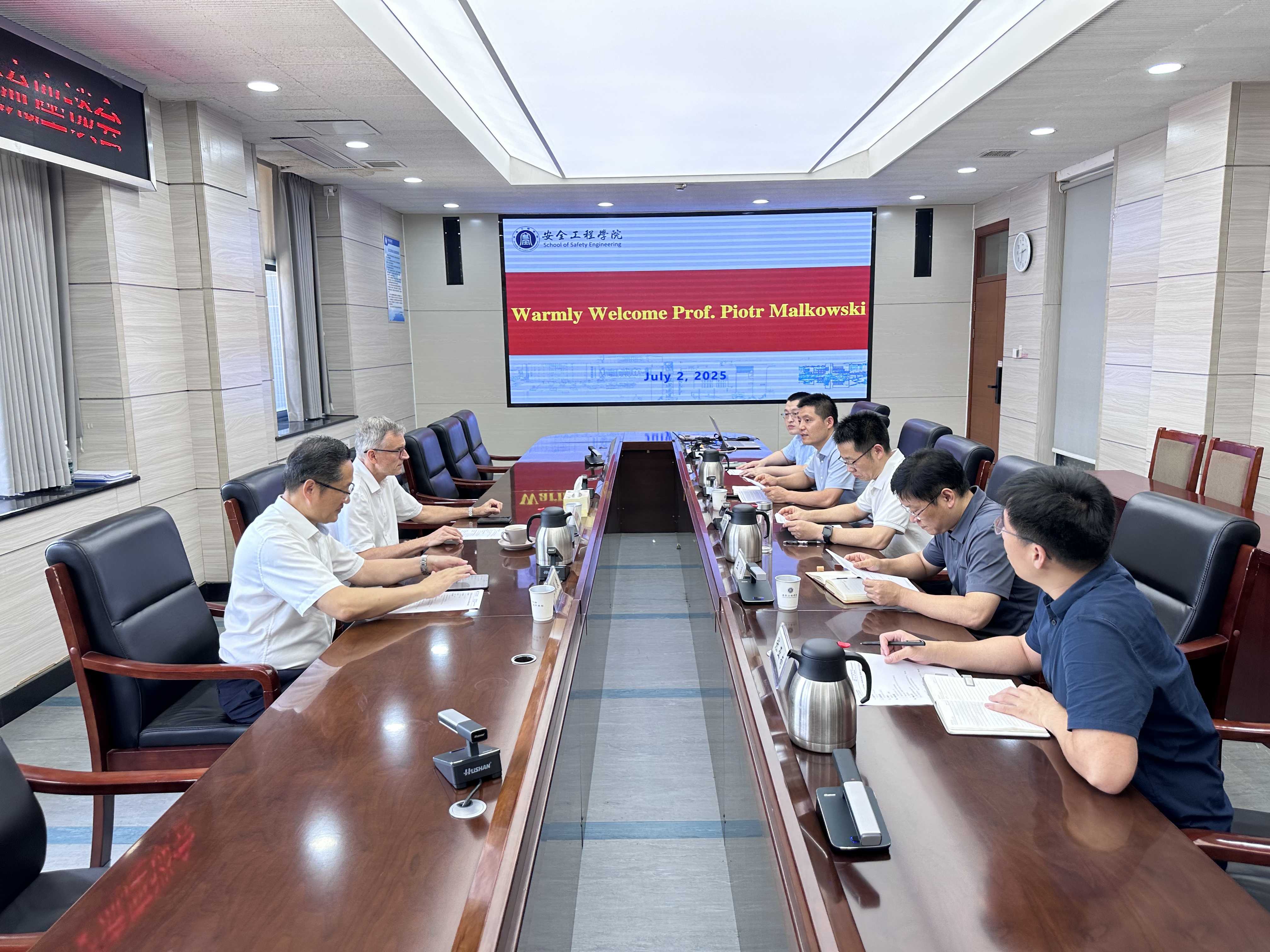 合作所做的努力,并期待以后能在安全学科领域能有更好更高层次的合作。Piotr Malkowski教授对学院的热烈欢迎表示感谢,并介绍了克拉科夫AGH大学及其土木与资源管理学院的基本情况、办学历史、研究领域等情况。