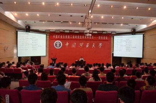 论坛期间,周院长主要从“个人成长经历与科研之路”、“读研所需具备的要素”、“典型实例说明”三个方面作了精彩的演讲。首先,周院长满怀深情地回顾了自己多年来在矿大学习和工作的经历,并勉励同学们把握青春,积极在实践中提升科研创新能力。随后,周院长结合长期奋战在科研和教学第一线的亲身经历,对读研所需具备的“积极态度、敢想敢做、坚持不懈、遵循制度、开放思路”等五个要素一一作了解读。周院长认为,态度决定一切,要具有阳光思维,学会主动沟通;不惧困难,不怕丢面子,想好的事情要及时做起来;有利的情况和主动的恢复,常常产生再坚持一下的努力之中;无规矩不成方圆,只有遵循制度才能营造出更好的学习环境;突破思维定式,寻找创新点,要敢于“想”,要能够“想”,要善于“想”。最后,周院长介绍了自身课题组的发展情况,通过典型实例,针对研究生的人才培养、课题组团队价值与荣誉观等问题介绍了宝贵经验,并发表了看法。报告结束后,同学们争先提问,认真做笔记,现场气氛热烈。