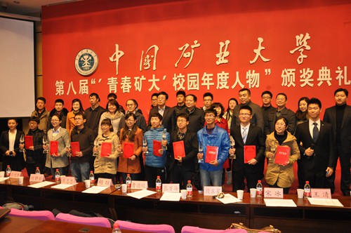 第八届“青春矿大校园年度人物”及提名奖获得者的通知》。共有8名学生和2个团队荣获第八届“‘青春矿大’校园年度人物”称号,另有8名学生和2个团队获得提名奖。校团委副书记陈文亲自为获得本次“‘青春矿大’校园年度人物”称号的王鹏飞同学颁奖。