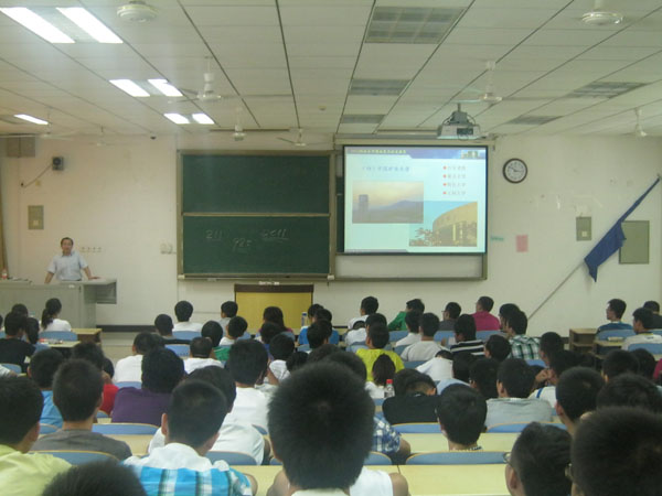 在同学们对大学有了初步的认识后,章书记把讲座的重点放在了学校和学院上,他向在座的同学阐述了矿大的办学理念和校园精神,特别是在新的历史条件下,学校一直秉承“爱国爱煤的传统”和“好学力行、求实创新、艰苦奋斗、自强不息”的精神,无论面对怎样的困难,全校师生都没有气妥,凭着对煤炭科技事业的忠诚和信念,负重奋进,自加压力,争创一流,在建设高水平大学的努力之中取得了令人瞩目的办学成就。紧接着,章书记又对学院相关专业进行了简要的介绍,并对现今煤炭的开采与矿井安全状况向同学们作了概述,使同学们初步了解了专业的性质与方向。讲座的最后,章书记希望在座的同学们能够正确的认识大学和专业,做一个有理想有抱负的现代大学生。