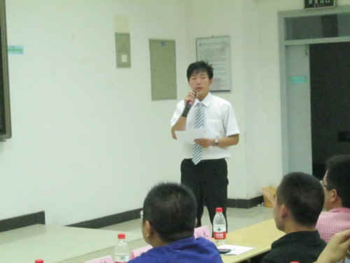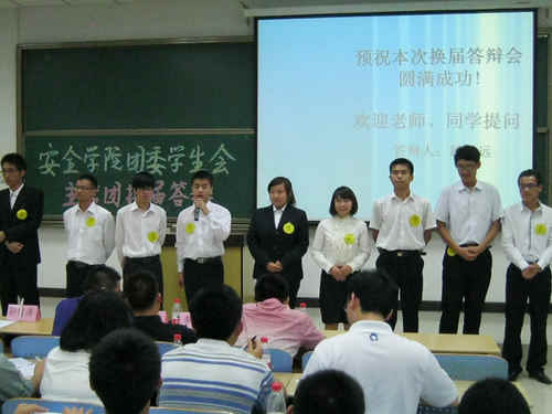 经过一番紧张而有序的前期准备工作之后,答辩会于7:00正式开始。在李念泽的主持下,9名答辩选手依次上台进行了精彩的答辩。答辩选手以PPT 的形式从自我介绍、工作经历、竞选优势和未来规划等四个方面进行了精彩的论述。由于选手们在事前做好了充足的准备,各自都对自己进行深度的剖析,畅谈各自的工作经历,展现各自的优点和能力,并对团委和学生会今后的工作进行了出色的规划,使得整场答辩格外精彩,现场气氛异常活跃。而在随后的问答阶段,面对评审们提出的的问题,选手们都结合自己的认识,从容应答。