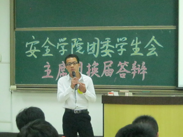 现任学生会主席郭良军进行述职报告