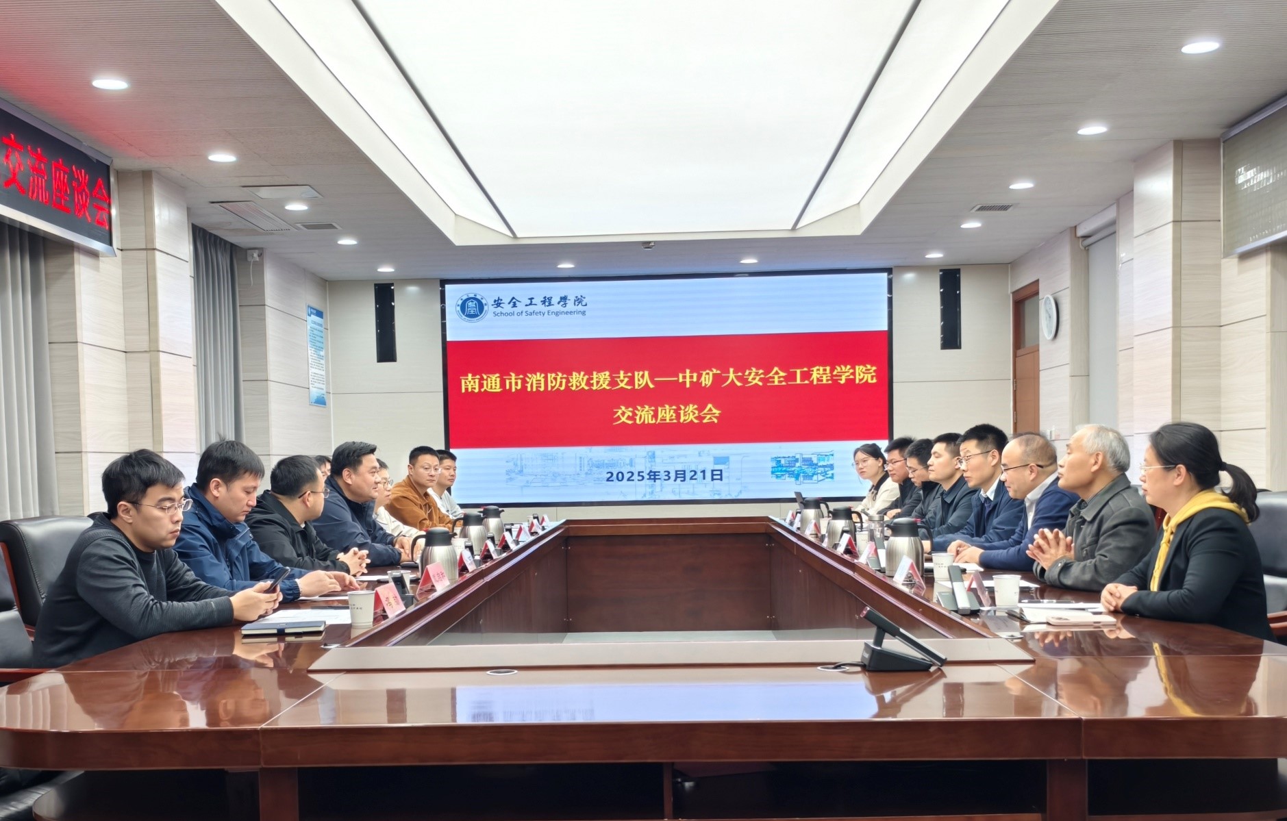 3月21日上午,南通市消防救援支队支队长花冰一行来院调研交流。学院在矿业科学中心A412举行座谈会,院长翟成出席会议。会议由江苏省城市火灾防控高校重点实验室副主任闫怀林主持。