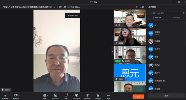 王亮副院长在交流研讨时指出,本次会议是“智慧+”安全工程专业虚拟教研室系列教研交流活动之一,教研室将形成交流机制,各共建高校定期发起特色教研活动,形成虚拟教研室共建共享的内生动力。