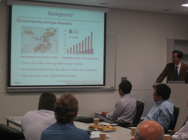 在澳期间,在卧龙岗大学召开了煤矿瓦斯治理技术交流会,卧龙岗大学、当地煤矿企业等单位派代表参会,会上程远平教授作了“The Key Technology of Reservoir Reconstruction and Gas Drainage in Deep Coal Seam Groups with High Gas Content”的报告,林柏泉教授做了“Dynamic Characteristic of Crack Evolution with Applying Hydraulic Fracturing in Coal Seam”的报告。会后,与卧龙岗大学商定今后在科学研究、教师互访和学生交流等方面加强合作。