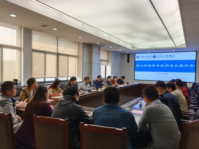 组织召开了关心关爱青年教师成长座谈会。院长王恩元,副院长郭梅香、王亮、仲晓星,学校首届卓越贡献者获得者林柏泉教授,教授委员会主任李增华教授,各科室主任,青年教师发展委员会副主任王青祥、委员张超林、余旭、冯乐乐,以及青年教师代表参加了会议。会议由副院长郭梅香主持。