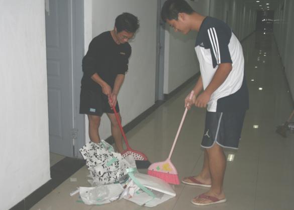 学生会和青年志愿者协会全体成员来到梅三,打扫了新生即将入住的宿舍。