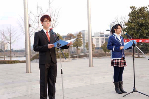 消防11-1班王婷和安全11-3班肖义萌作为学生代表,朗诵了《学习雷锋精神倡议书》,向全体青年学生发出学习雷锋精神的倡议。