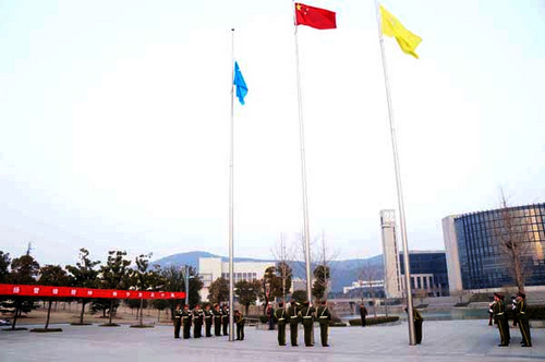 早上7时,庄严的仪仗队护卫着国旗走入场内。英姿飒爽的国旗护卫队的队员们迈着整齐的步伐,护送国旗入场。伴着庄严嘹亮的国歌,五星红旗冉冉升起。随后,包子漫画