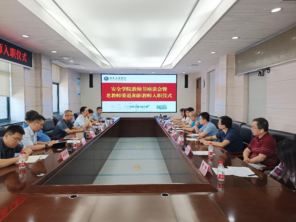 在第39个教师节来临之际,9月7日下午,学院在矿科A412会议室召开教师节座谈会暨老教师荣退和新教师入职仪式。院党委书记曲颂、教育部第三批“全国高校黄大年式教师团队”负责人林柏泉教授、荣退教师刘贞堂教授、副院长郭梅香、院工会主席戚绪尧,以及部分教师代表、新教师、各科室主任参加了座谈会。座谈会由副院长郭梅香主持。