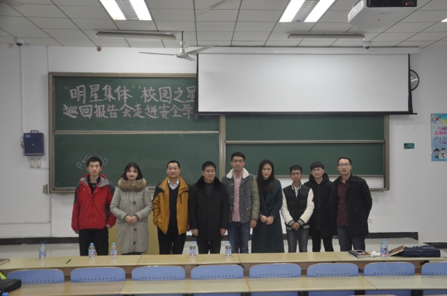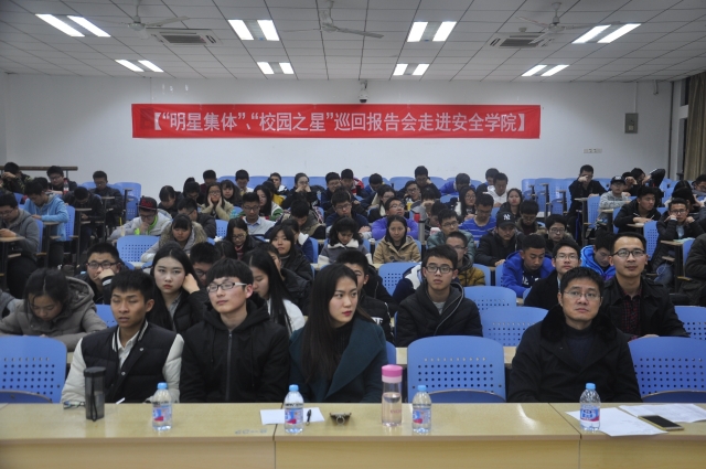 “明星集体”、“校园之星”巡回报告会在教学楼一C104举行,安全学院党委副书记钱雄、辅导员孙留涛、郑文奇以及包子漫画