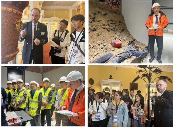 本次实习采用海外导师“传-帮-带”模式,由海外教师带领实习学生参观并进行集中授课,日程安排紧凑,实习内容丰富充实。实习伊始,同学们参观了俄罗斯圣彼得堡矿业大学主校区及矿业博物馆,对这所历史悠久的矿业学府进行初步认识。随后在第一周内,通过课堂授课及实验室参观的方式,依次学习了矿山经济学、测量学、当代采矿技术研究前沿、数字化矿井、现代爆破技术、矿井设计风险分析、现代矿物加工技术等课程,了解了海外知名大学的学科前沿。此外,参观了圣彼得堡矿业大学研究院、岩石力学研究中心,初步掌握了煤矿学科相关科研仪器的操作,为同学们日后继续深造、开展研究工作奠定了基础。周末,在俄方带领下参观了叶卡捷琳娜大帝的私人博物馆“冬宫”和彼得大帝官邸“夏宫”,让大家在学习科学知识之余感受了文化的熏陶、了解了俄罗斯璀璨的历史文化遗产。实习第二周,课程主要围绕虚拟教学实验室展开,通过虚拟现实技术开展了煤矿生产场景漫游等教学实践任务;学习了固体废弃物处理、铁矿开采、岩石力学、露天采矿技术等课程,进一步涉猎了矿业工程专业在海外的研究进展;前往“Smart Labor”认识了土木工程施工过程中可能引发事故的危险操作,为日后在工矿企业的安全生产奠定了实践基础。本次海外实习内容聚焦俄罗斯矿业工程学科前沿,使同学们充分了解并学习领域内最新研究内容与发展动态,矿大师生的良好风貌也受到了俄方代表的一致称赞。实习过程中,刘晓斐副院长、冯乐乐副教授和张一楠老师通过定期沟通,充分掌握学生在海外期间的工作及心理健康情况,协调完善实习内容及质量管理,保证了实习效果。通过本次实习,我们也发现了与对方在学科发展建设方面的差距,尤其是国际知名度和毕业生在雇主的口碑等。