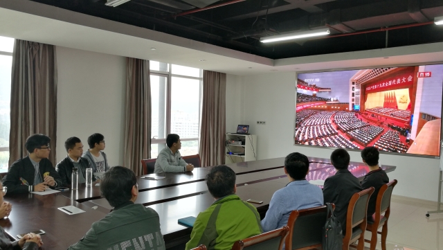 学院党委理论学习中心组成员、院机关党支部全体党员在矿业科学中心A412集中收看十九大开幕会。党员工作站、各党支部以集中学习、宿舍、实验室收看等等多种方式组织广大党员收看开幕会。