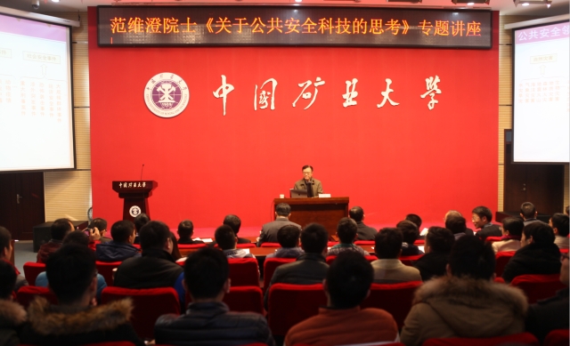 20日上午10:00,范维澄院士来到矿大图书馆报告厅,为全校数百名师生做了题为《关于公共安全科技的思考》的专题学术报告。他从最近几年国内的公共安全事故引入主题,列举了天津港爆炸、山东青岛输油管爆炸等重大事故,同时对比美国911事件、日本福岛核电站爆炸事故以及欧洲食品安全问题等世界各国安全事故的事后处理,详细讲述了我国公共安全与欧美发达国家的发展水平差距。随后,他从建设韧性城市的角度,以日本城市公共安全架构和墨西哥城市安全项目为例讲解了未来对于紧急突发事件的管理与反应。讲座中,范维澄院士还详细讲解了“公共安全三角形”理论模型、我国公共安全技术体系以及公共安全网的构建,对我国未来公共安全所面临的问题与挑战进行了展望与思考。报告会最后,范维澄院士与师生们进行了互动交流。本次学术报告会现场座无虚席,部分同学站在过道聆听了报告。