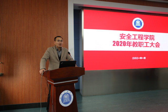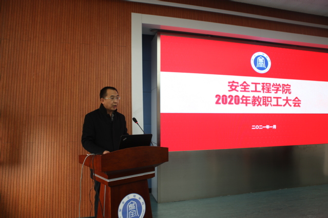 王恩元院长向全体与会人员报告了2020年度学院工作,他全面回顾和总结了一年来学院本科教学、人才培养、师资队伍、科学研究、学科建设、平台建设、党建和管理与服务等方面取得的成绩,并就2021年的工作提出了建议。王恩元院长强调,2020年是非同寻常的一年,在校党委及行政的正确领导下,全院师生同心协力、抗击疫情,扎实有序并高质高效地完成了各项任务,学院事业发展取得了新进展、新成效,学院年度绩效考核为A等。但是在双一流同期总结和第五轮学科评估过程中,发现工作中仍存在的一些问题,学院将作为重点任务在“十四五”期间重点整改。