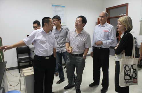 教授为澳大利亚卧龙岗大学Chris Cook院长一行介绍实验设备