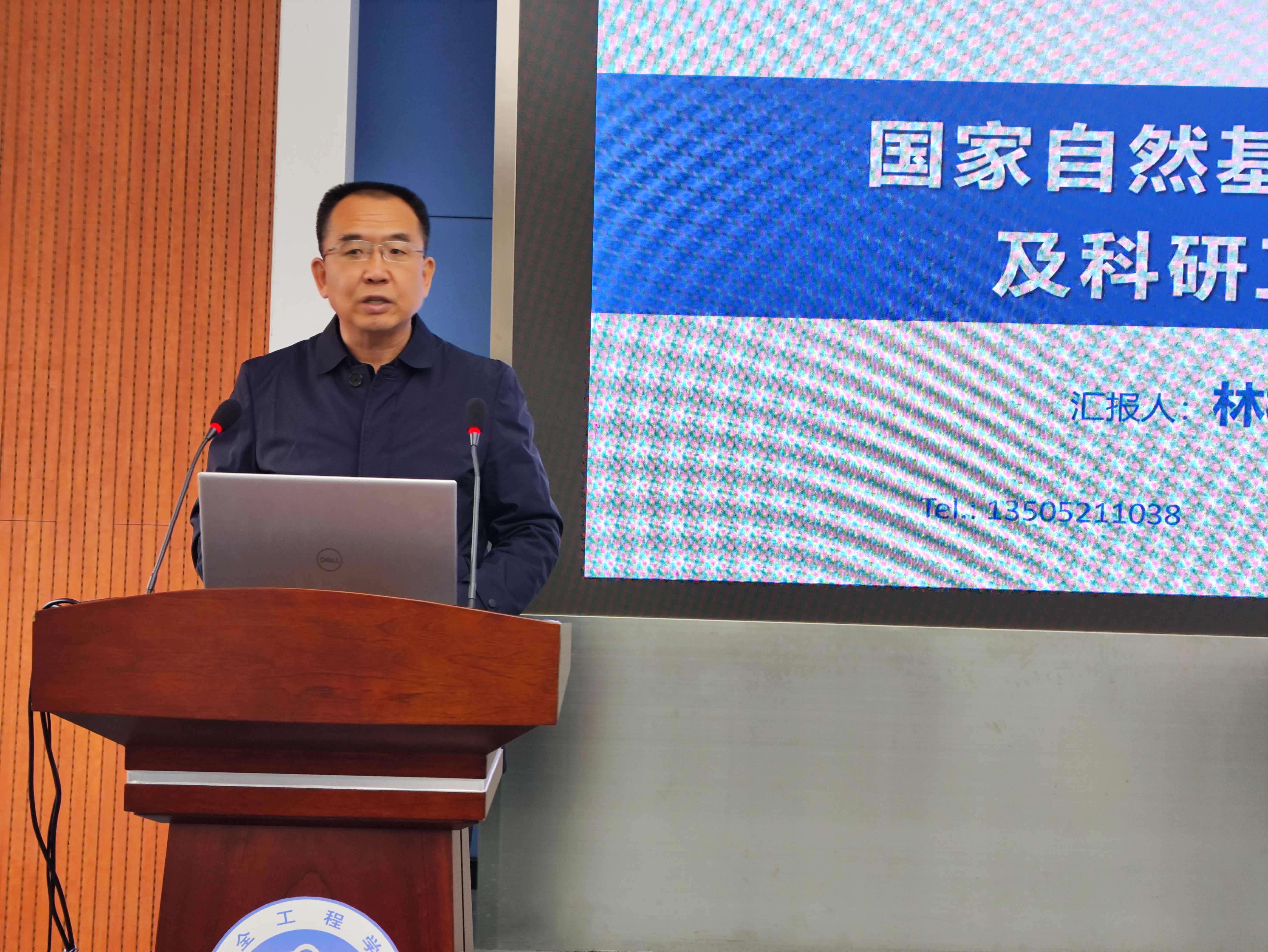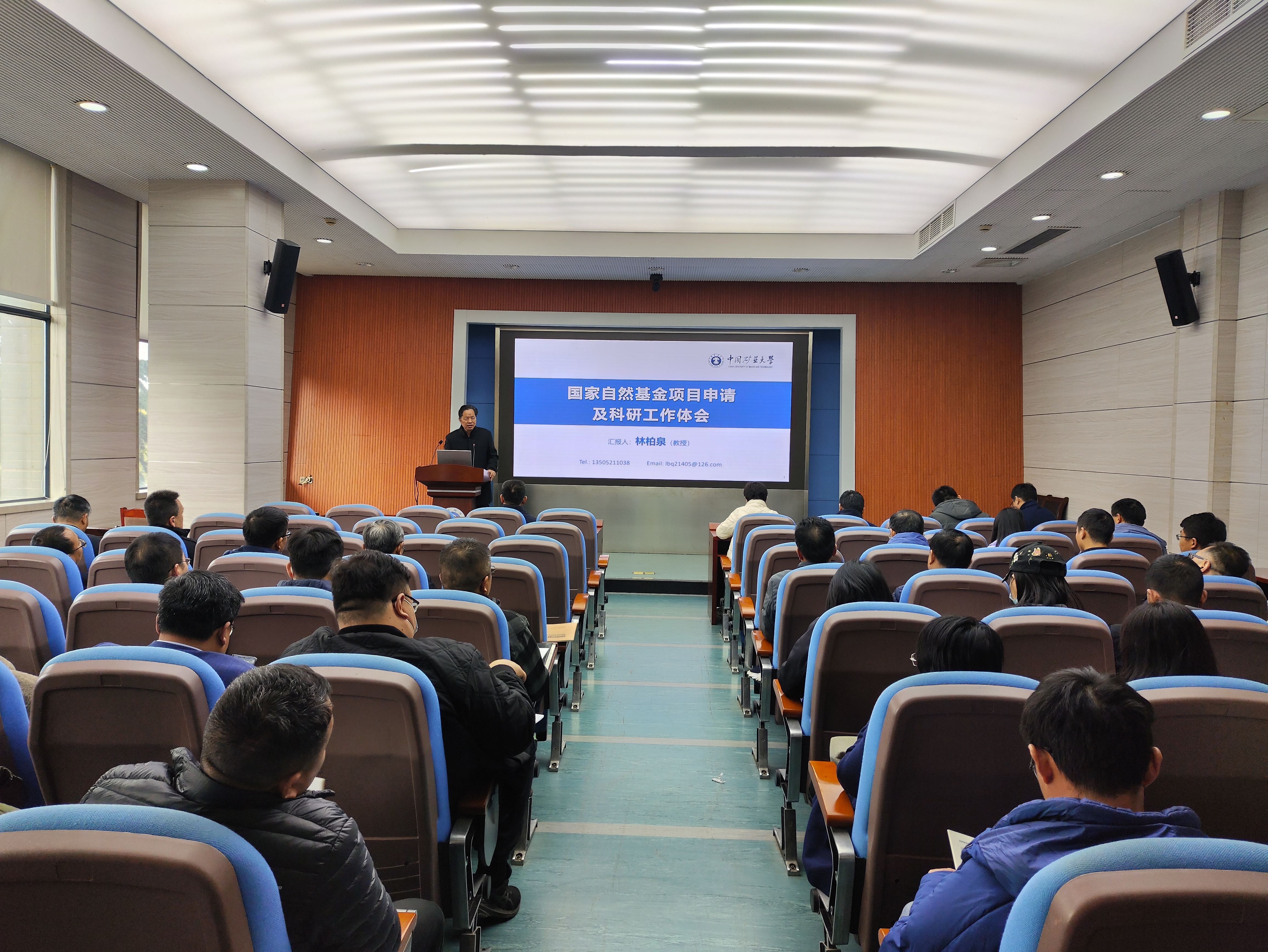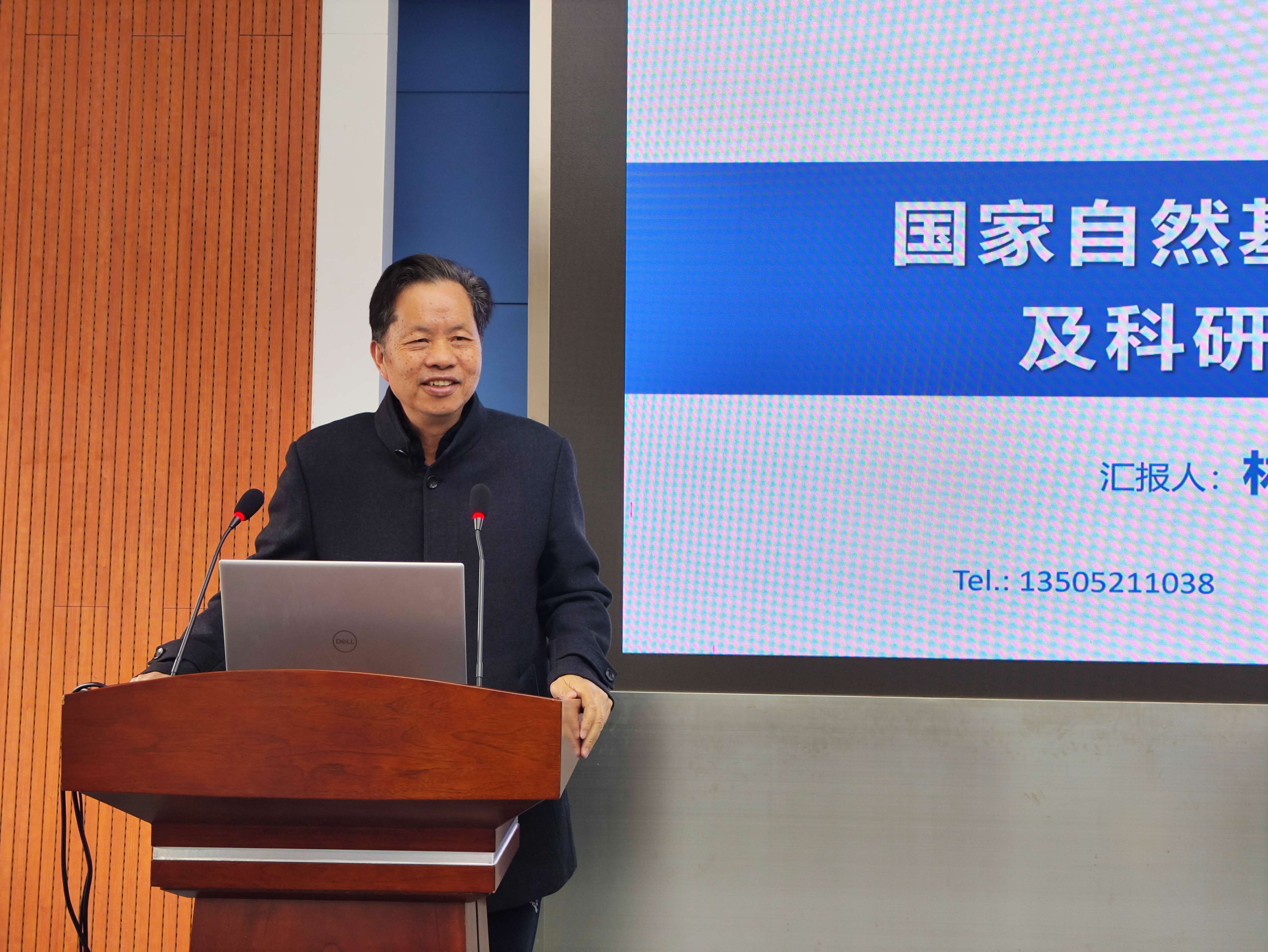 林柏泉教授首先从申请经历体会、申报注意事项、失败原因分析、科研工作体会四个方面做了《国家自然基金项目申请及科研工作体会》的报告,鼓励老师要勤奋要坚持。随后,他结合个人申请获批国家自然科学基金项目为案例,跟老师分享了国家基金申请的六次收获。他希望各位老师能在努力中不断的创新,并强调只要坚持就能成功。