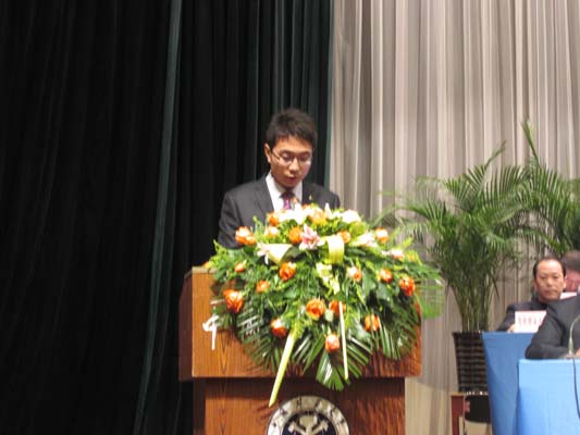 研究生王庆国作为学生代表登台发言,在发言中,他向大家介绍了课题组的情况并与大家分享了课题组获奖的经验。