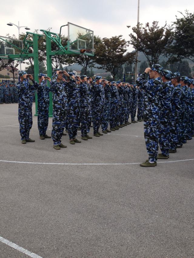 之后,新生随教官指挥,进行摆臂练习,之后并开始每一排面的齐步走与跑步走的练习比赛。不少新生并不满意自己排面的表现,多次打报告要求教官再给他们一次机会,表现出了极高的积极性。