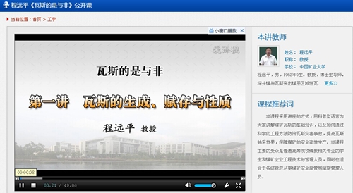 此次上线的精品课程《瓦斯的是与非》共有六讲,总时长约3小时。介绍的主要内容有:什么是煤矿瓦斯,煤矿瓦斯是如何生成的,煤矿瓦斯是怎样赋存的,煤与瓦斯突出灾害发生的条件、过程及其危害,瓦斯爆炸灾害发生的条件、过程及其危害,瓦斯的能源性质,瓦斯的环境性质,我国煤矿瓦斯抽采和利用现状及对改善煤矿安全状况的作用。
