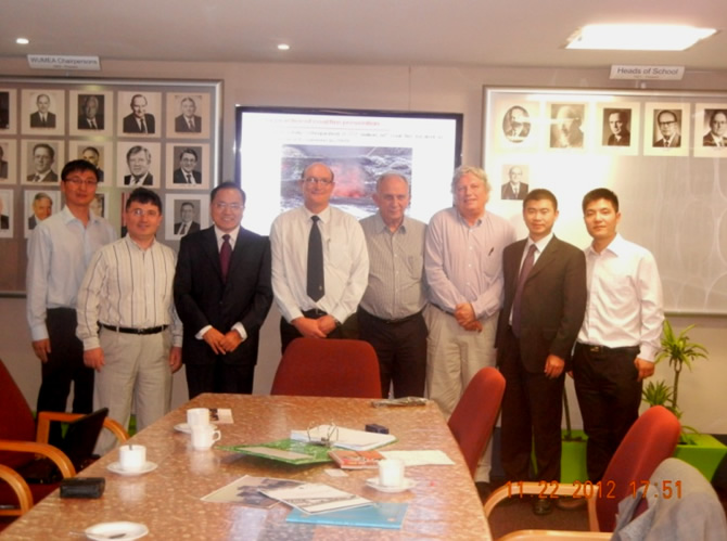 矿井通风防灭火研究所王德明教授、秦波涛教授、仲晓星副教授以及戚绪尧博士一行4人,于2012年11月22日至2012年11月30日赴南非共和国进行了学术交流。期间,先后与金山大学(University of The Witwatersrand)矿业工程学院、比勒陀利亚大学(The University of Pretoria)矿业工程学院、英美资源集团(Anglo American plc)下属的Kleinkopje Colliery和Greenside Colliery等高校或煤炭企业进行了学术交流和技术探讨。