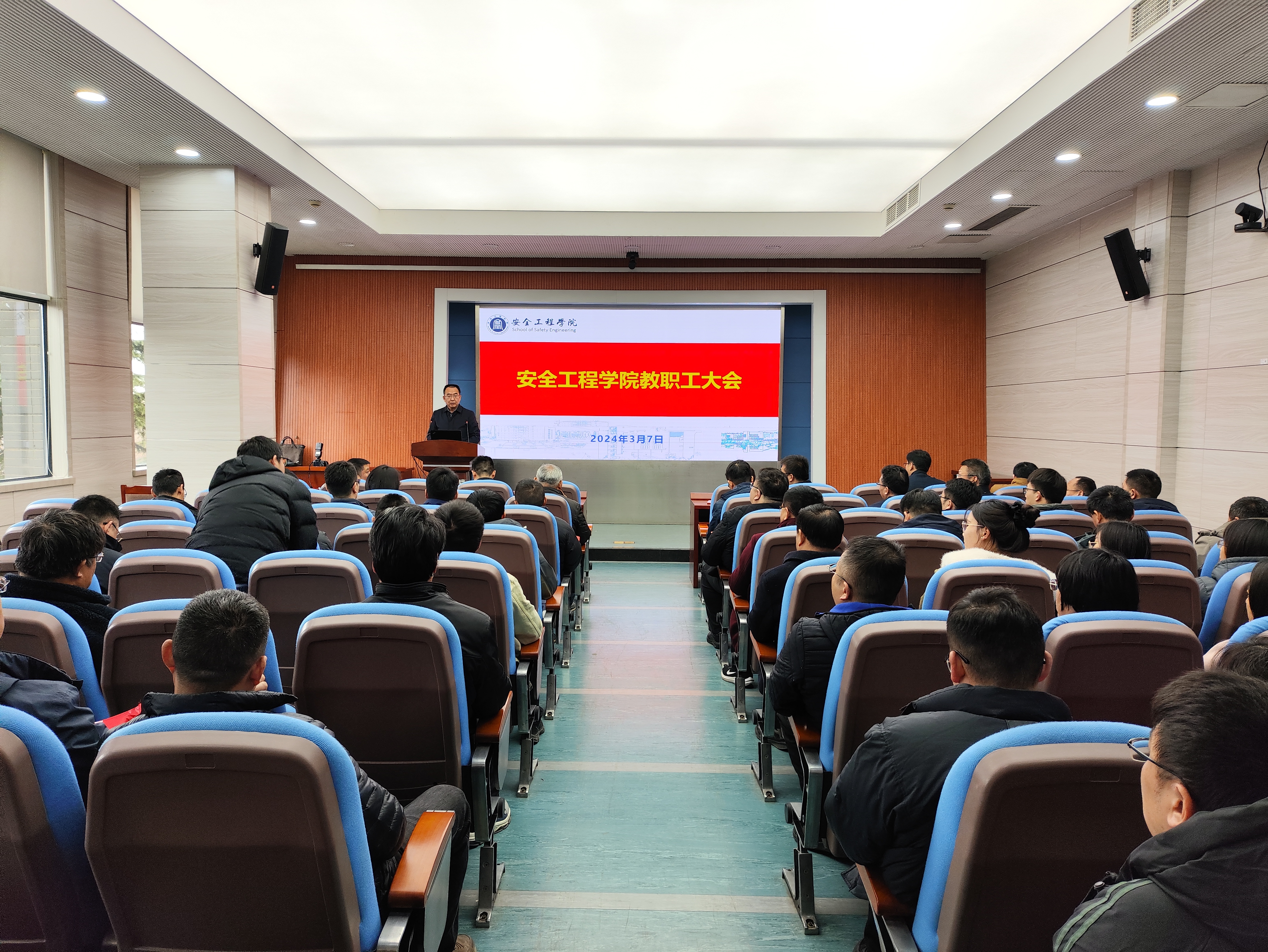 在矿业科学中心A200召开教职工大会推进部署学院2024年重点工作。学院和瓦斯中心全体领导、教师等参加了会议。会议由院党委书记王恩元主持。
