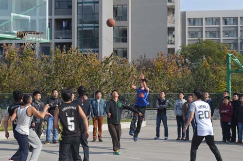 在获得开场发球权后,程远平老师组球队率先发起进攻,并突破严密的防守,顺利得分。林柏泉老师组球队不甘落后,通过默契的团队合作,迅速进球。两队进行多轮进攻与防守后,逐渐进入了紧张的状态。一幕幕三分远投接连不断地上演,激烈的比赛使得场上场下一片沸腾,加油呐喊声此起彼伏,鼓掌欢呼声连绵不绝。相近的比分显得比赛十分焦灼,双方难辨雌雄。经过全场40分钟激烈地角逐,最终程远平老师组球队以80分的成绩刷新单场得分纪录,获得冠军。比赛结束后,各球队进行了合影留念。