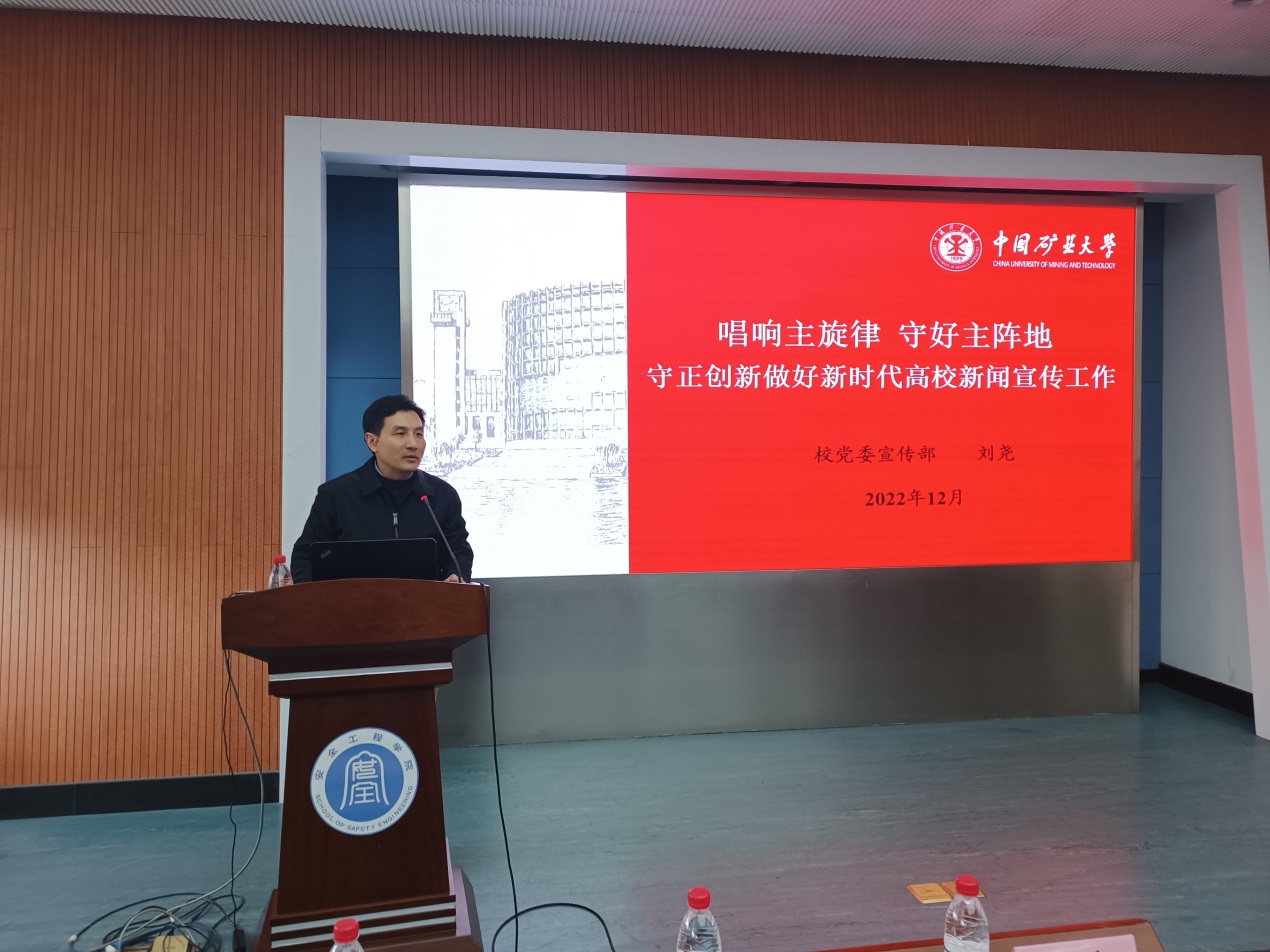 党委在矿业科学中心A200报告厅举办党务干部工作培训会,会上,邀请校党委宣传部副部长刘尧作报告。学院党委委员,各党支部支委,专兼职辅导员和团学组织学生党员代表参加了培训会,会议由院党委书记曲颂主持。