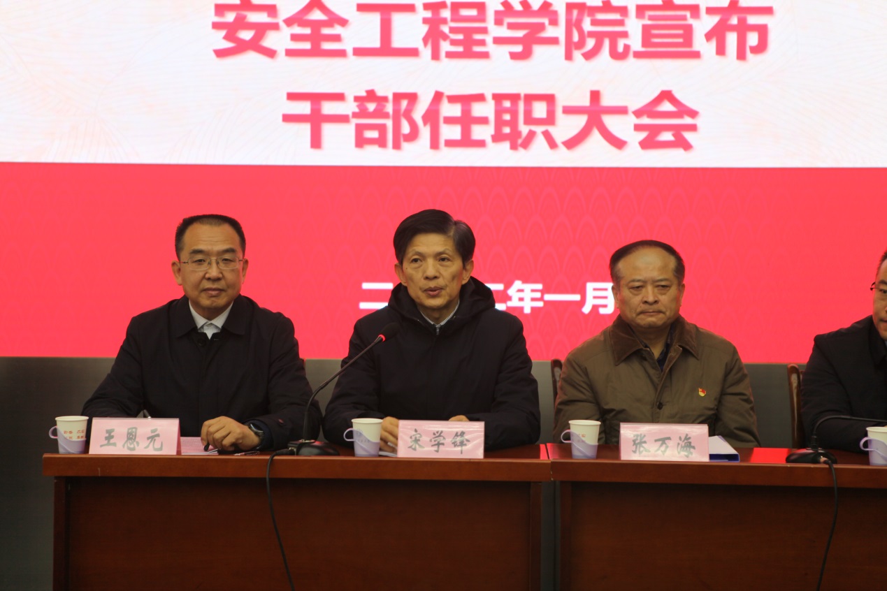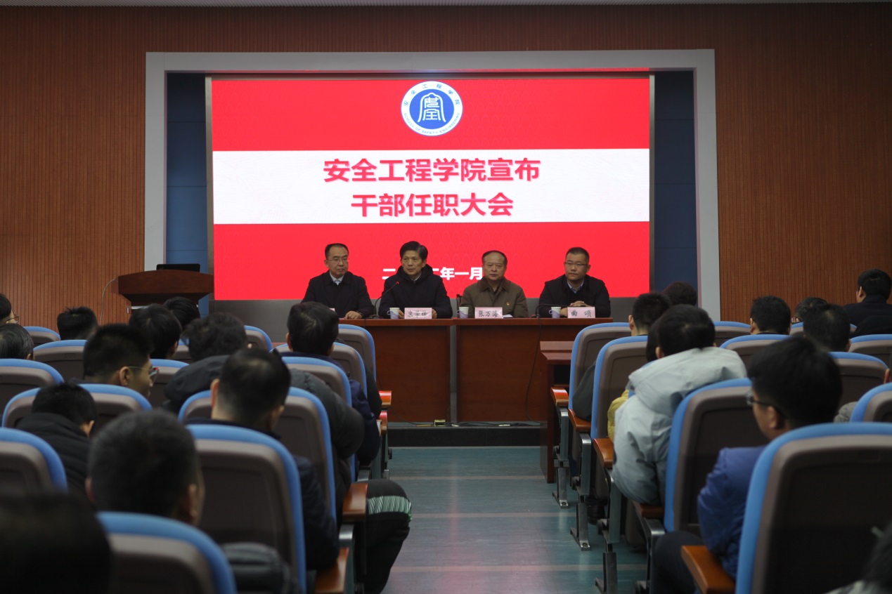 在矿业科学中心A200报告厅召开干部任职大会及年度教职工代表大会。会上宣布学院党委书记任免决定,校长宋学锋,校党委常委、组织部部长张万海,学院党政领导、平台负责人及全体教职员工出席会议。院长王恩元主持会议。