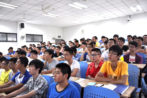 上午8:30时,讲座准时开始。伴随着同学们热烈的掌声讲座拉开了帷幕。首先,章书记用言简意赅的语言向同学们讲述了大学的由来,并通过引用古代的大学、西方的大学和现在的大学三个例子具体阐释了“大学”的含义,从历史上各个时期的发展对大学作了较为详尽的介绍。随后,章书记又从多个方面开展讲座,在宏观上让14级的新生们更加深入的解了他们即将开始的大学之旅。整场讲座,章书记结合当下社会现实、旁征博引,他精彩纷呈的讲演,赢了同学们阵阵掌声。