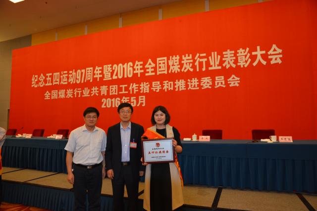 团委被授予“全国煤炭行业五四红旗团委”称号。院团委书记孙婷代表学院团委上台领取了奖牌和荣誉证书。
