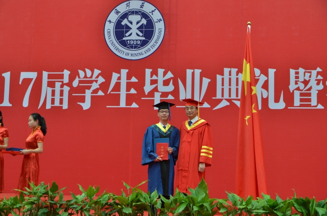 2017届博士、硕士毕业生100余人参加仪式。仪式由王恩元副院长主持,他首先宣读了授予学位的研究生名单,随后,周福宝院长颁发学位证书,葛世荣校长亲自为每一名研究生扶正流苏并合影留念。仪式结束后,全体参加仪式的师生在体育馆前合影留念。