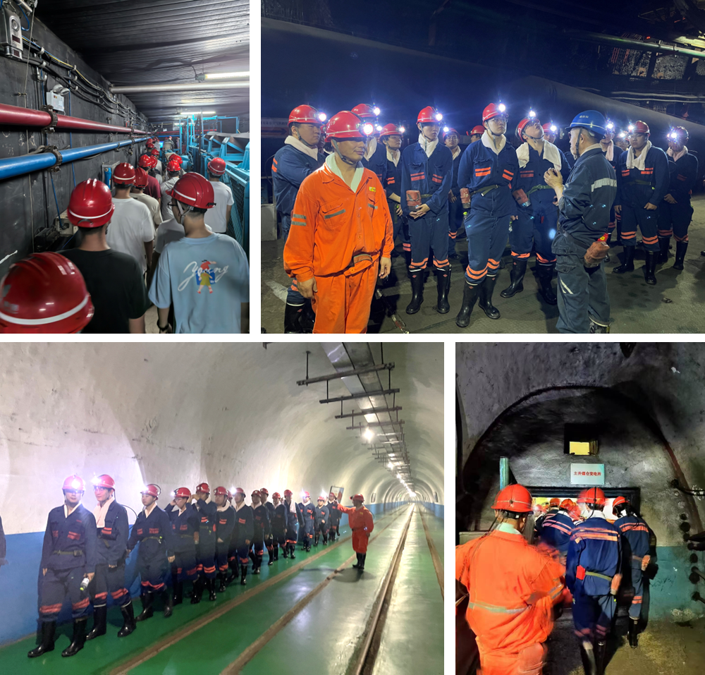 井下实地参观,筑牢安全理念。在严格完成入井安全培训后,同学们在煤矿通防部和安监部专业人员的带领下,前往井底车场、进回风大巷、中央变电所、中央泵房、胶轮车车场、主井装载站等关键区域,将书本上的概念与生产实际相结合,直观认识到为何通风系统是矿井的“呼吸系统”,直接关系到所有作业人员的生命安全。规范醒目的避灾路线标识、完好的设备设施、整洁的作业环境以及工作人员的规范操作……现场所见所闻无不深刻诠释着“细节决定安全”的理念。