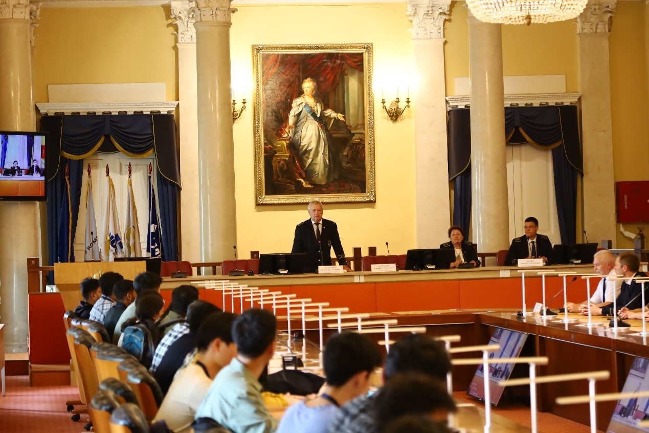 师生表示热烈欢迎。他们希望通过此次实践提升同学们的专业素养与知识水平,体验俄罗斯文化,并进一步深化两校的交流合作。随后,矿业工程学院院长 Oleg Kazanin 教授详细介绍了本次暑期实践活动的整体日程安排与具体要求,并组织同学们参观了圣彼得堡矿业大学矿业博物馆。