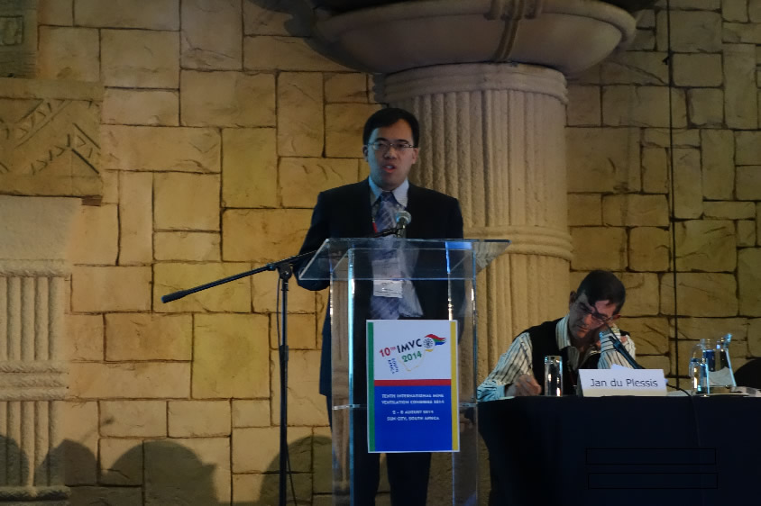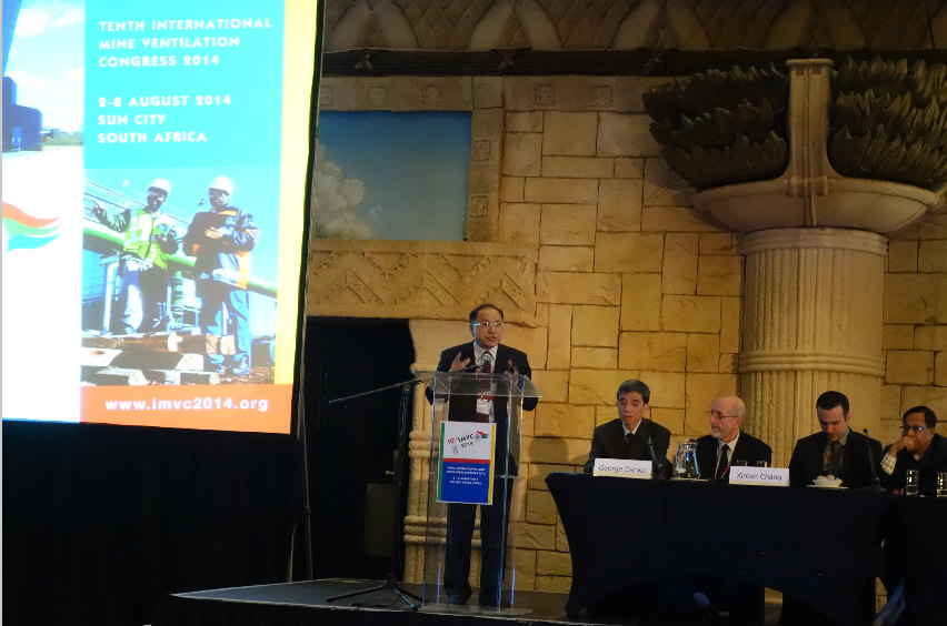 三人于2014年8月1日至8日在南非太阳城参加了此次会议。本届会议的主题是“规划未来矿山通风领域前景”,目的是要立足当今国际发展形势,面对当前技术挑战,以创新的思想理念来繁荣矿业通风工程领域。与会期间,王德明教授宣读了题为《A new approach to extinguish coal fires by using water mist technology》的会议主题论文,该文章主要介绍了新型水雾防灭火技术及现场应用,其研究内容引起了相关领域来自南非、日本、印度学者的极大关注。周福宝教授作了《Failure of a mine door and its cascading effects on mine ventilation system》主题演讲,重点关注了通风系统失效致灾这一问题并提出了相应的潜在解决思路。