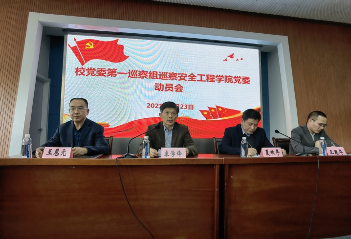 校长宋学锋、巡察组组长夏柏年及巡察组成员出席会议,学院全体教职工和学生代表参加本次会议。院党委副书记、院长王恩元主持会议。