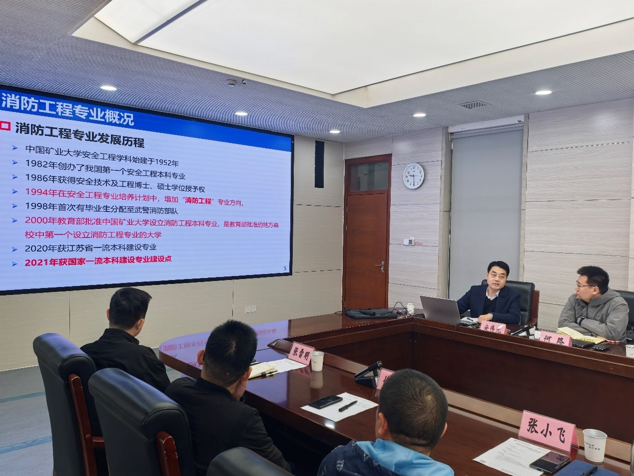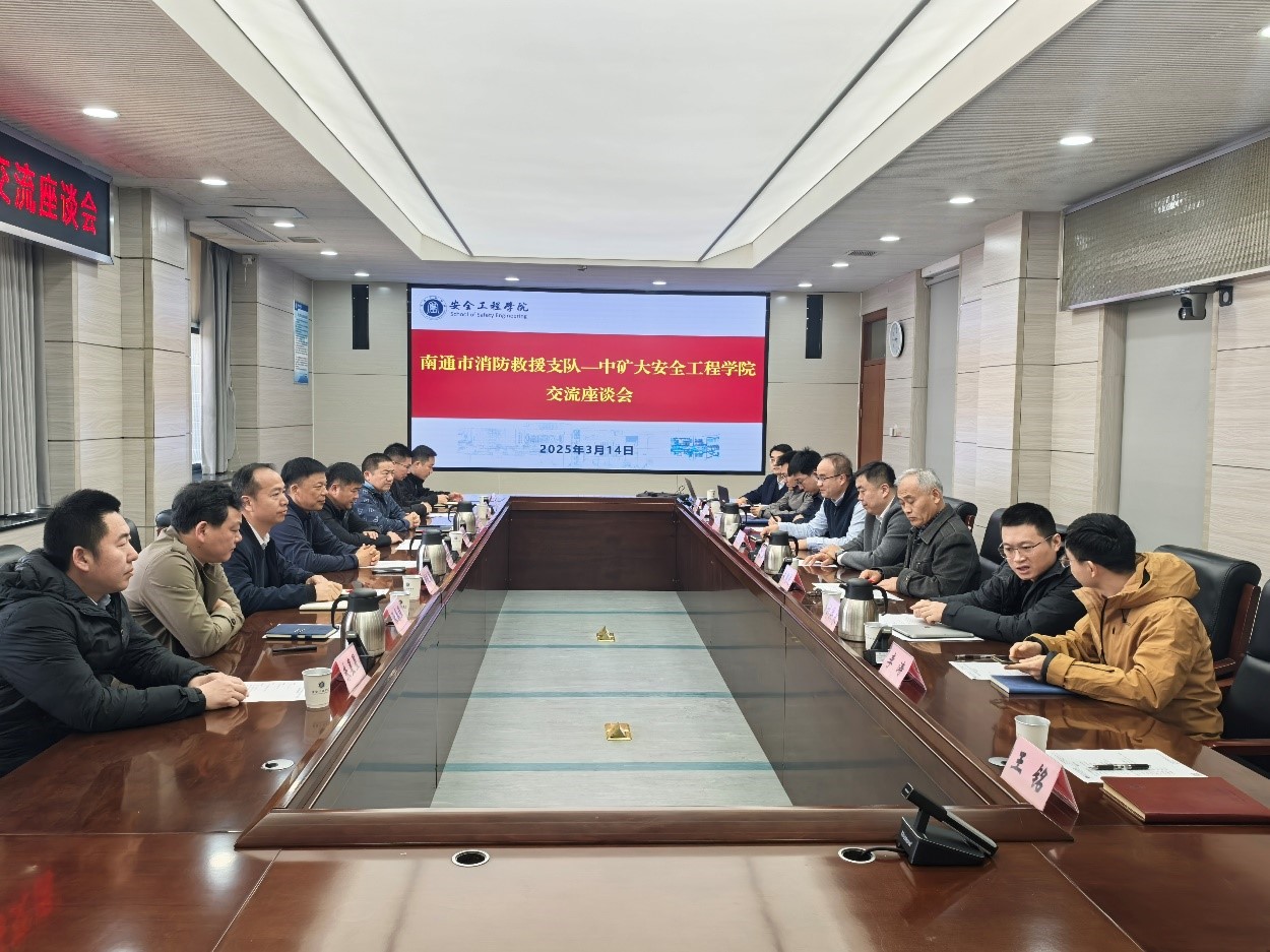 3月14日上午,南通市消防救援支队党委书记、政治委员姚鹏勇一行来院交流调研。学院在矿业科学中心A412举行座谈会,院党委书记宋冰出席会议。会议由江苏省城市火灾防控高校重点实验室副主任闫怀林主持。