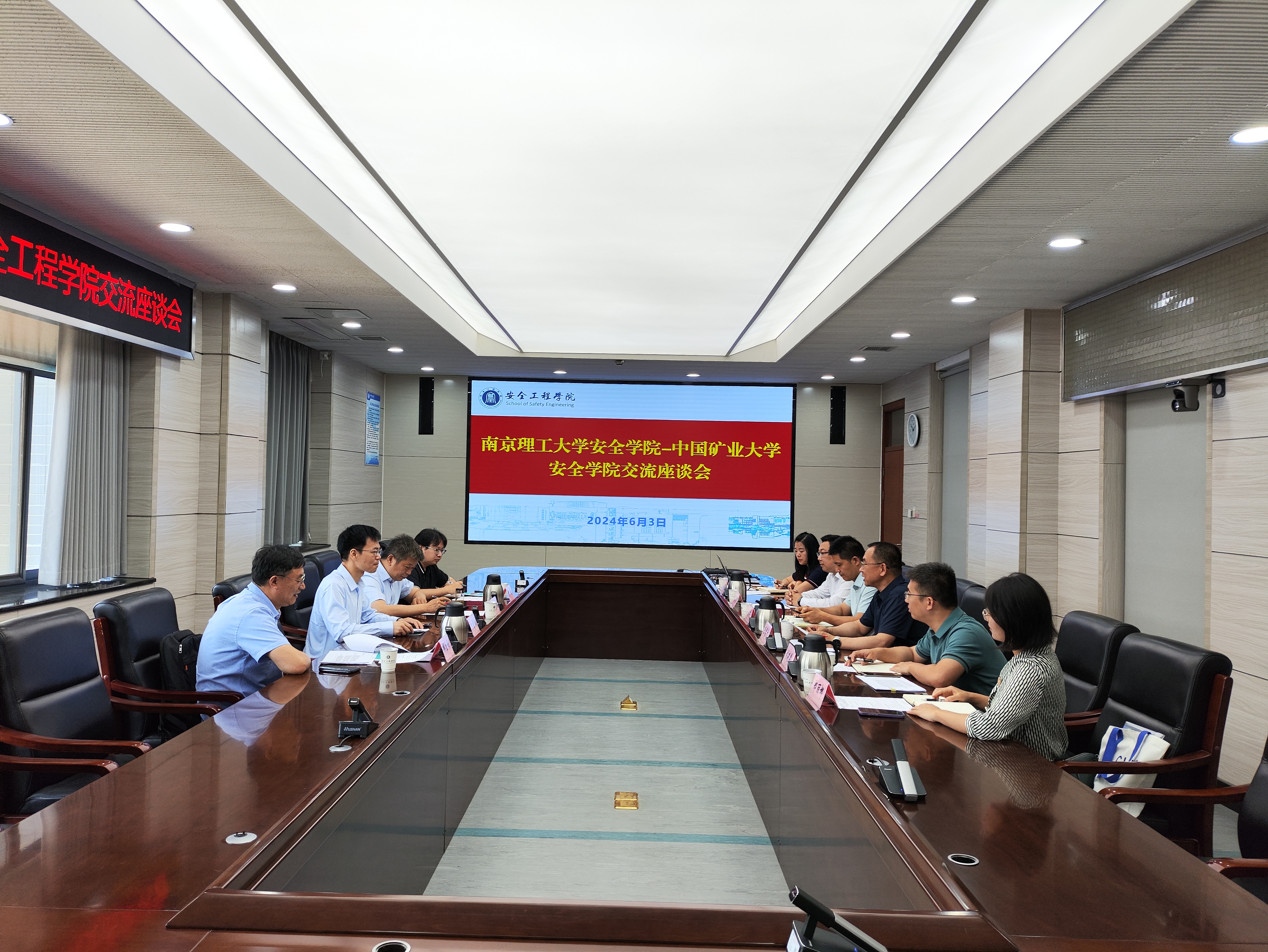王恩元书记首先代表学院对庄志洪书记等一行来院交流表示欢迎,随后从学院历史、学科实力、师资队伍建设、教育教学与人才培养、科学研究等方面介绍了学院的基本情况。