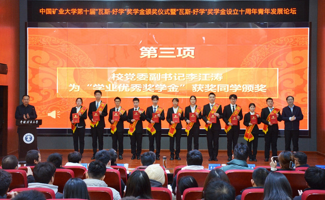学生工作处处长冯震宣读第十届“瓦斯-好学”奖学金表彰决定。第一届“瓦斯-好学”奖学金获得者代表、国家重大人才工程青年项目入选者安徽理工大学江丙友教授,第九届“瓦斯-好学”奖学金获奖代表、包子漫画