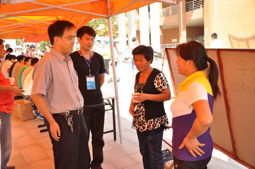 章毛平书记和周福宝院长亲临迎新现场,慰问烈日下仍坚守岗位的志愿者们以及团委学生会的学生干部们,他们殷切的鼓励激发了在场所有同学的工作热情。